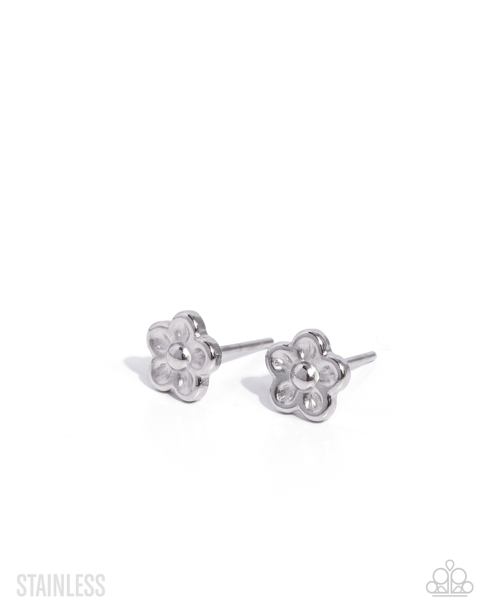 Featuring stainless steel, a dainty flower blooms atop the ear for a classic, whimsical display. Earring attaches to a standard post fitting.