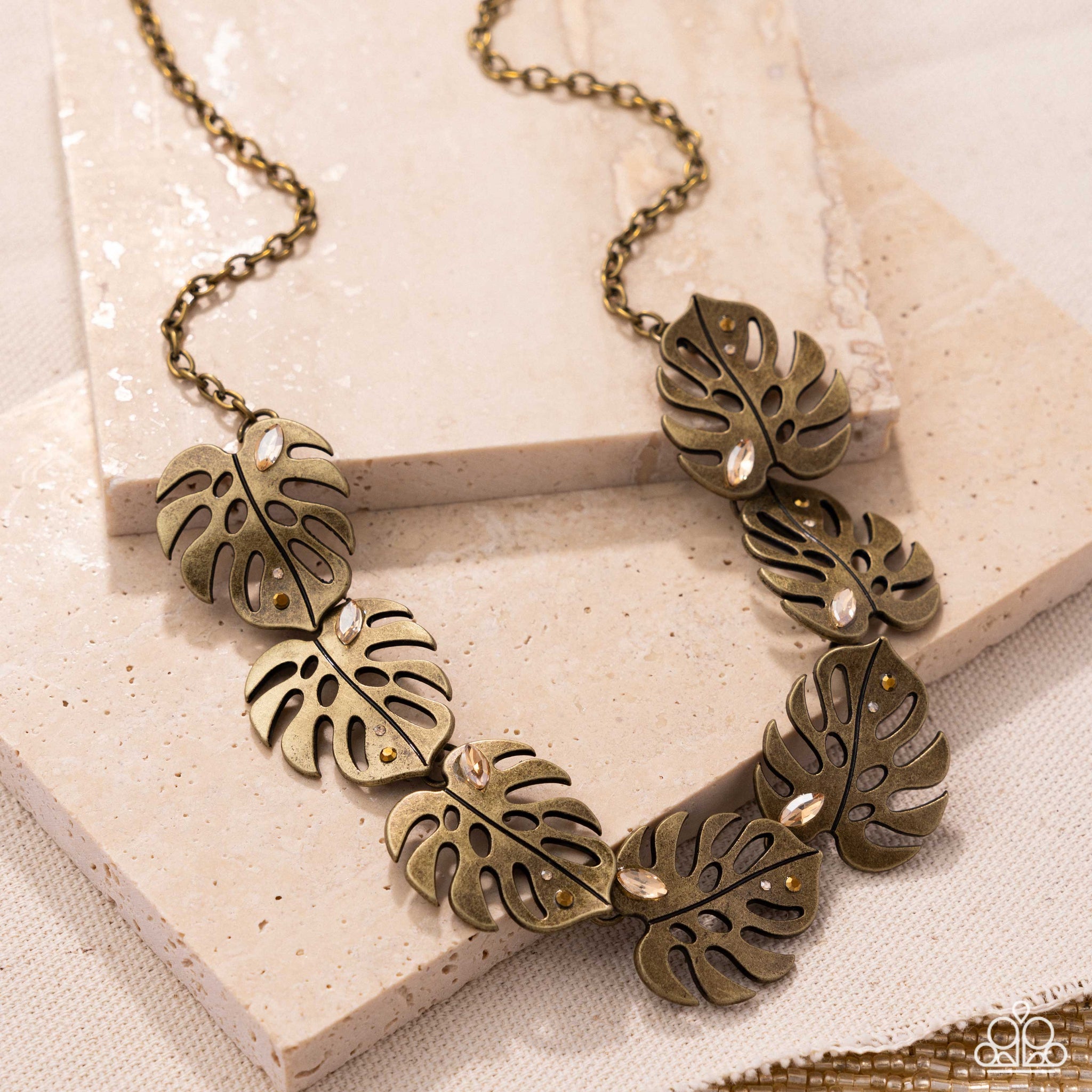 Paparazzi "Leafy Legato" Brass Necklace & Earring Set