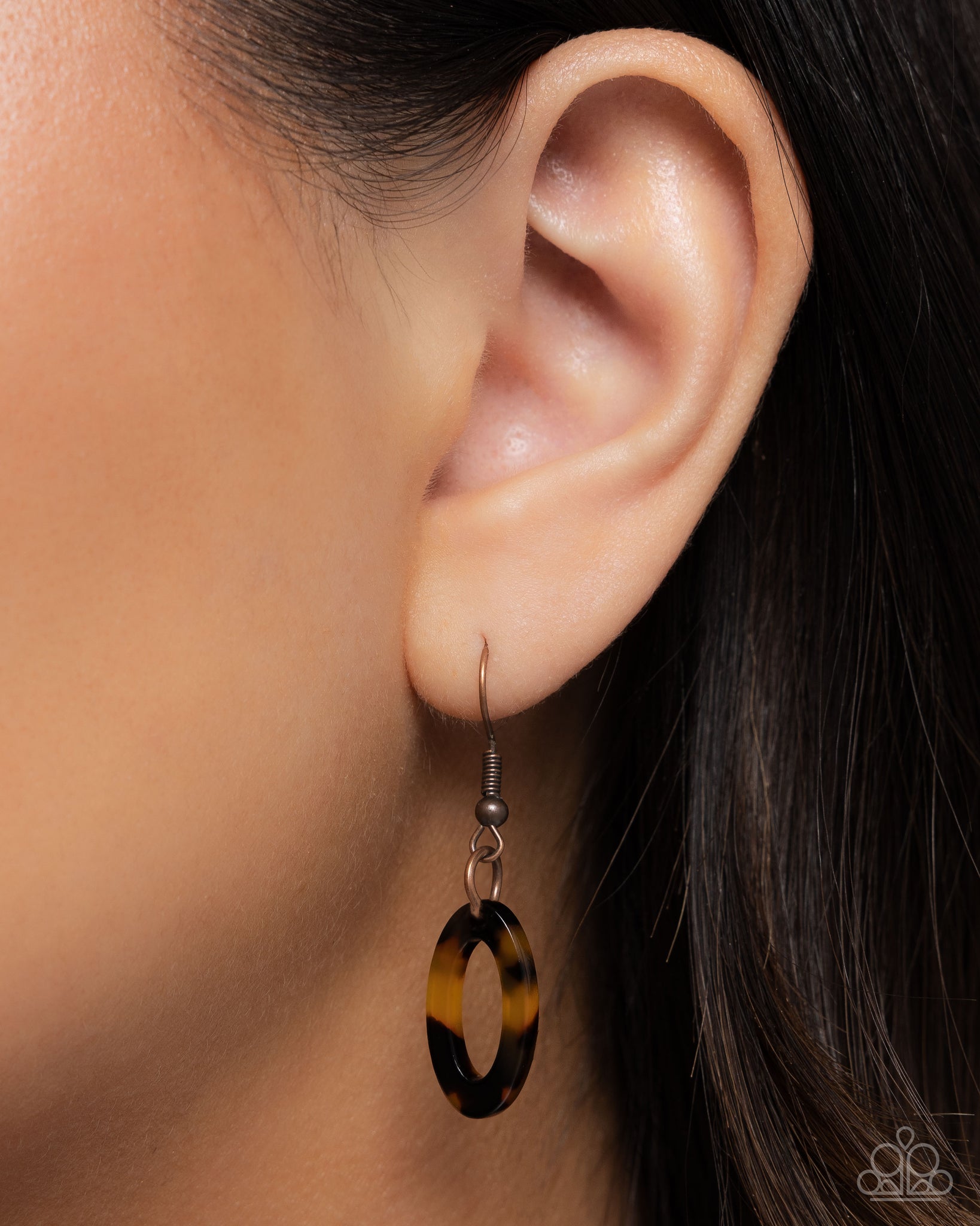 Featuring airy oval frames, a solitaire hammered copper frame links with brown tortoiseshell acrylic frames, and glistening rounded copper links around the neckline in two layers for a colorfully retro look. Features an adjustable clasp closure.