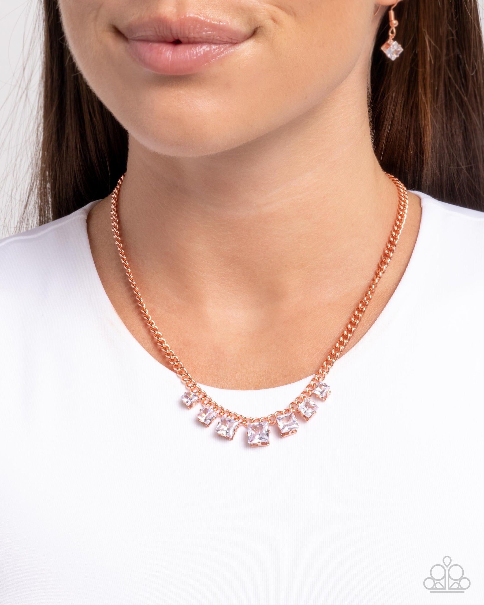 Paparazzi "Seeking Out Squares" Copper Necklace & Earring Set