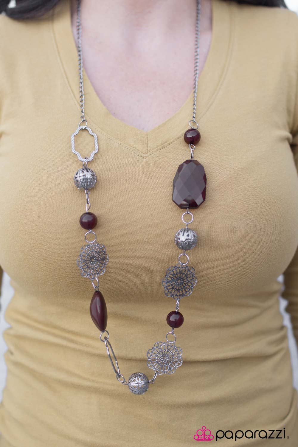 Shimmery gunmetal ornaments combine with oversized beads along a shiny gunmetal chain. Enhanced with marble, polished, and faceted surfaces, oversized brown beading is added to the display for a dramatic finish. Sold as one individual necklace. Includes one pair of matching earrings.