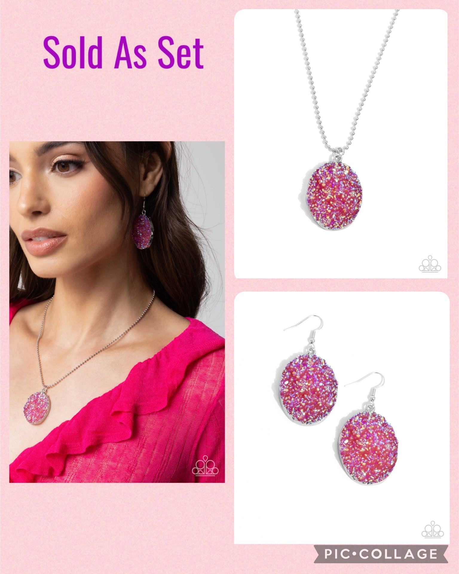 Paparazzi "Dreamy & Dynamic Druzies" Pink Necklace & Earrings Jewelry Set