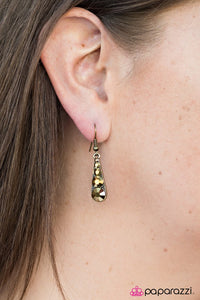 Dazzling aurum rhinestones increase in size as they trickle down a teardrop shaped frame. Brushed in a high-matte finish, the elegant brass frame swings from the ear, catching and reflecting the light for an undeniable sparkle. Earring attaches to a standard fishhook fitting.