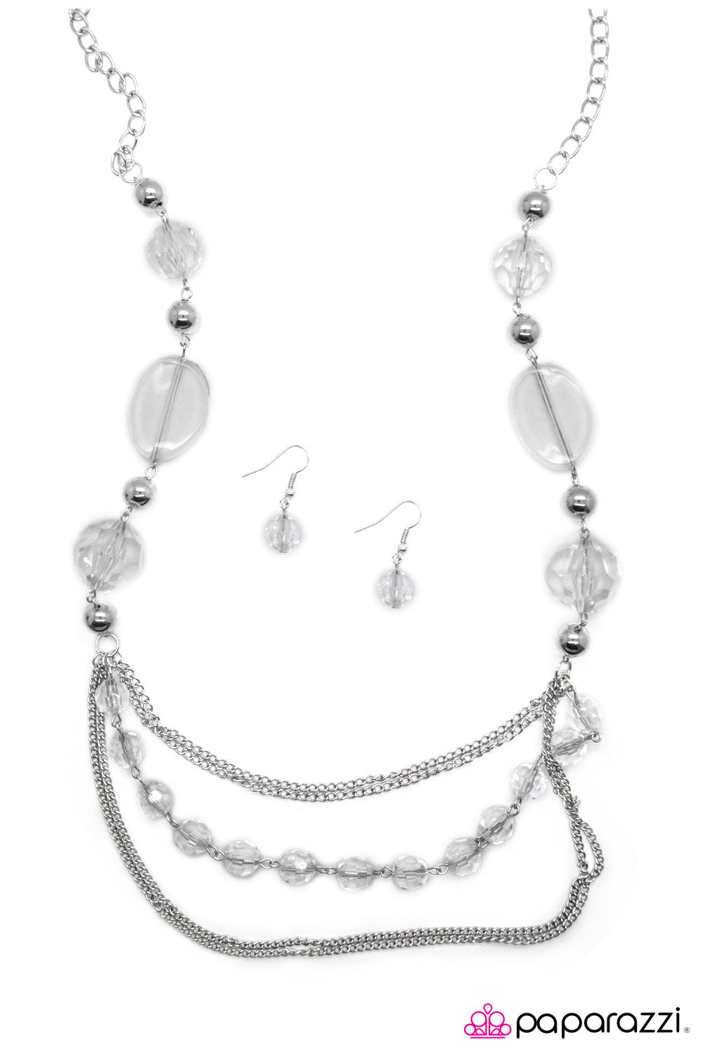 Tranquil beads finished in shimmering faceted edges cascade down a simple silver chain. Complemented with a row of dazzling white gems and layered silver chain, the refreshing design creates an elegant elongating effect. Features an adjustable clasp closure. Sold as one individual necklace. Includes one pair of matching earrings. Get the Complete Look Bracelet:The Opening Act (sold separately)