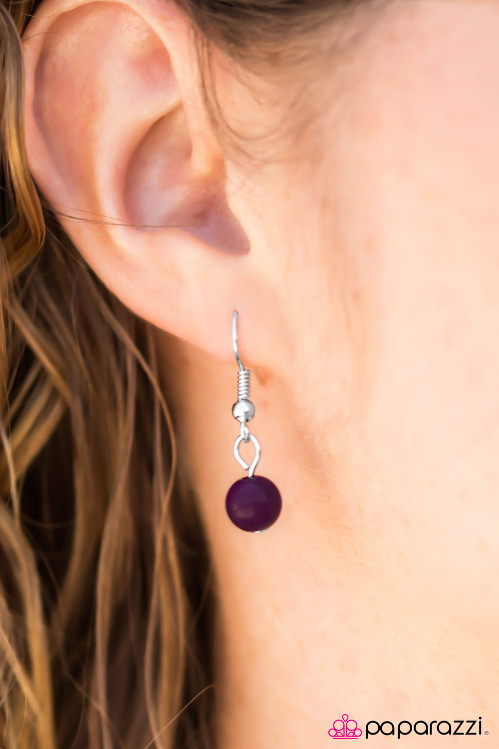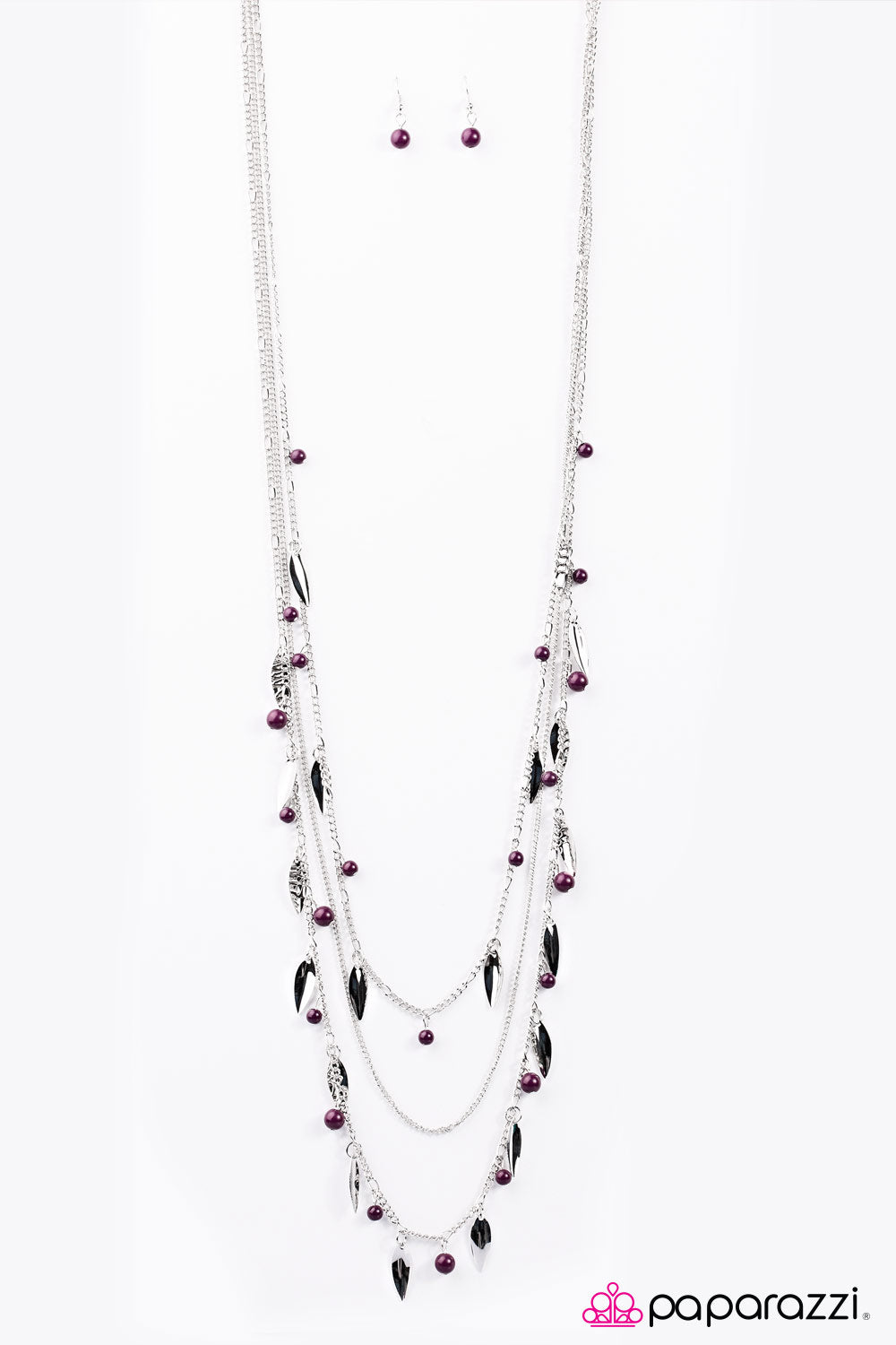 Playful purple beading combines with shimmery metallic shells, creating a feathery fringe. A plain silver chain hangs between the flirty layers for a crisp finish. Features an adjustable clasp closure. Sold as one individual necklace. Includes one pair of matching earrings.