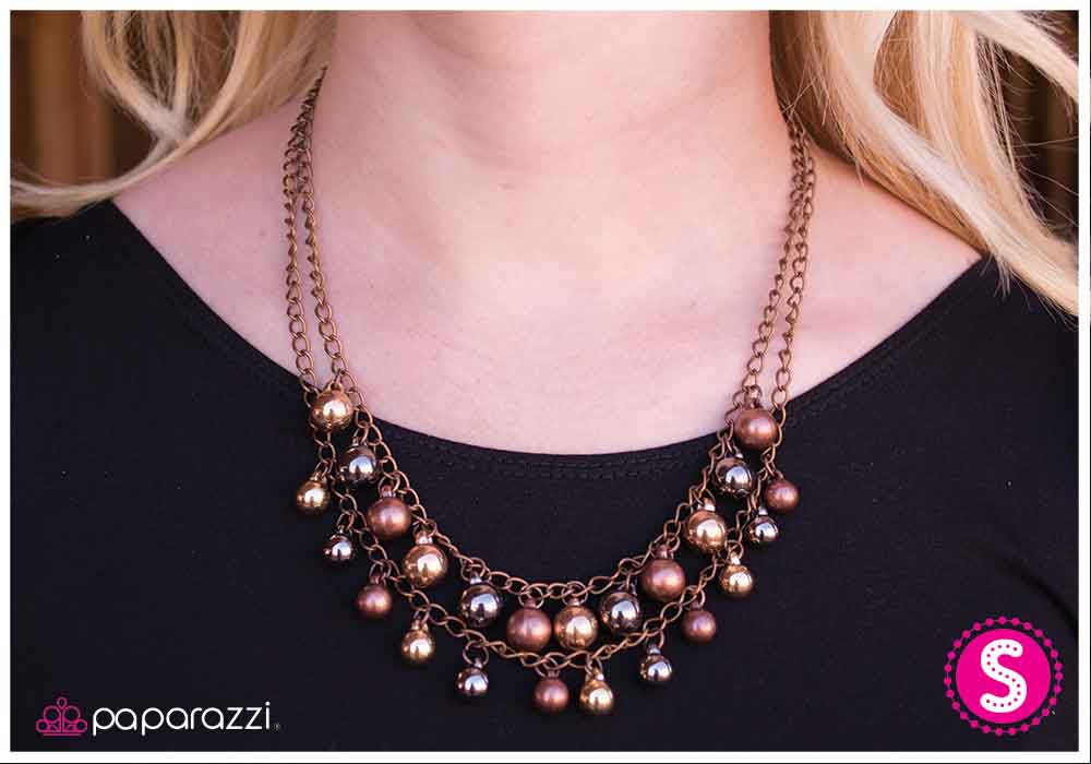 Two strands of copper chain are tiered to create a layered look. Each strand is decorated with alternating beads in high-sheen gold, copper, and gunmetal finishes. Features an adjustable clasp closure. Sold as one individual necklace. Includes one pair of matching earrings.