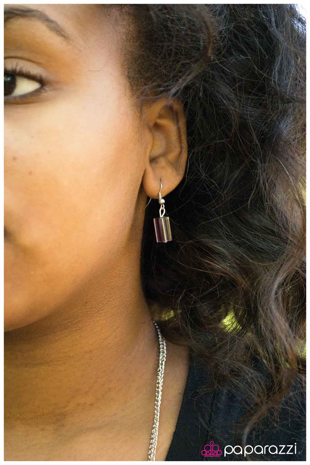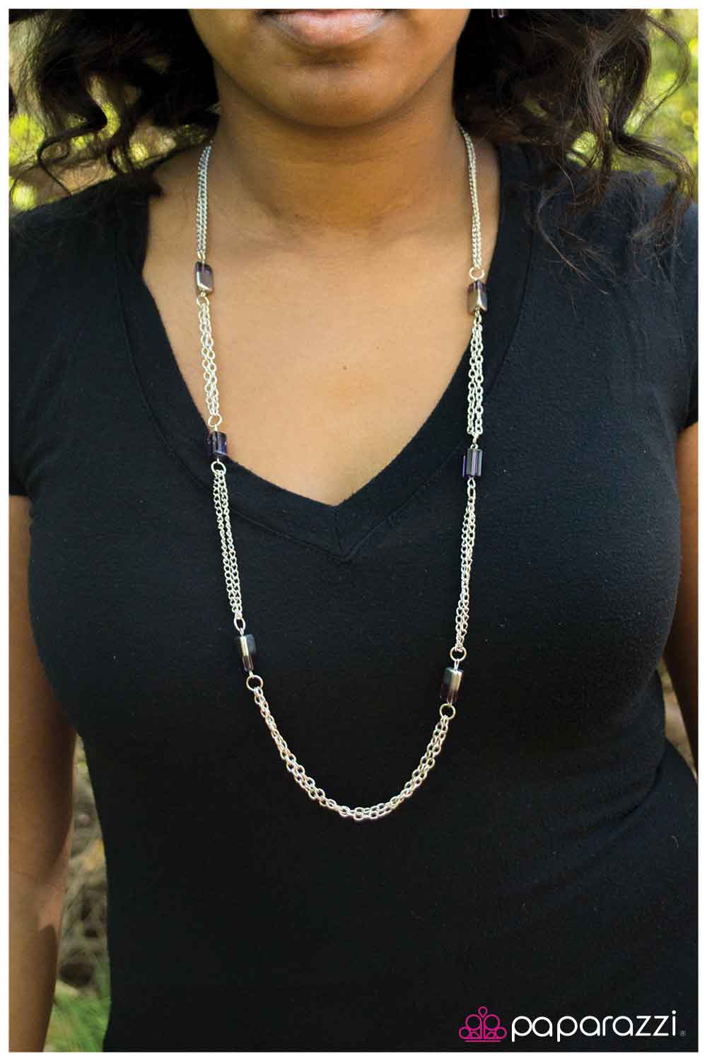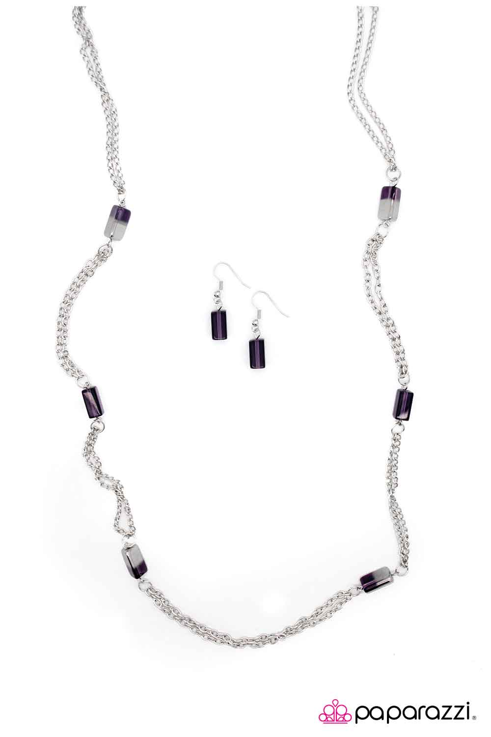 Elongated purple beads in a glazed finish separate sections of silver chain. Features an adjustable clasp closure. Sold as one individual necklace. Includes one pair of matching earrings.