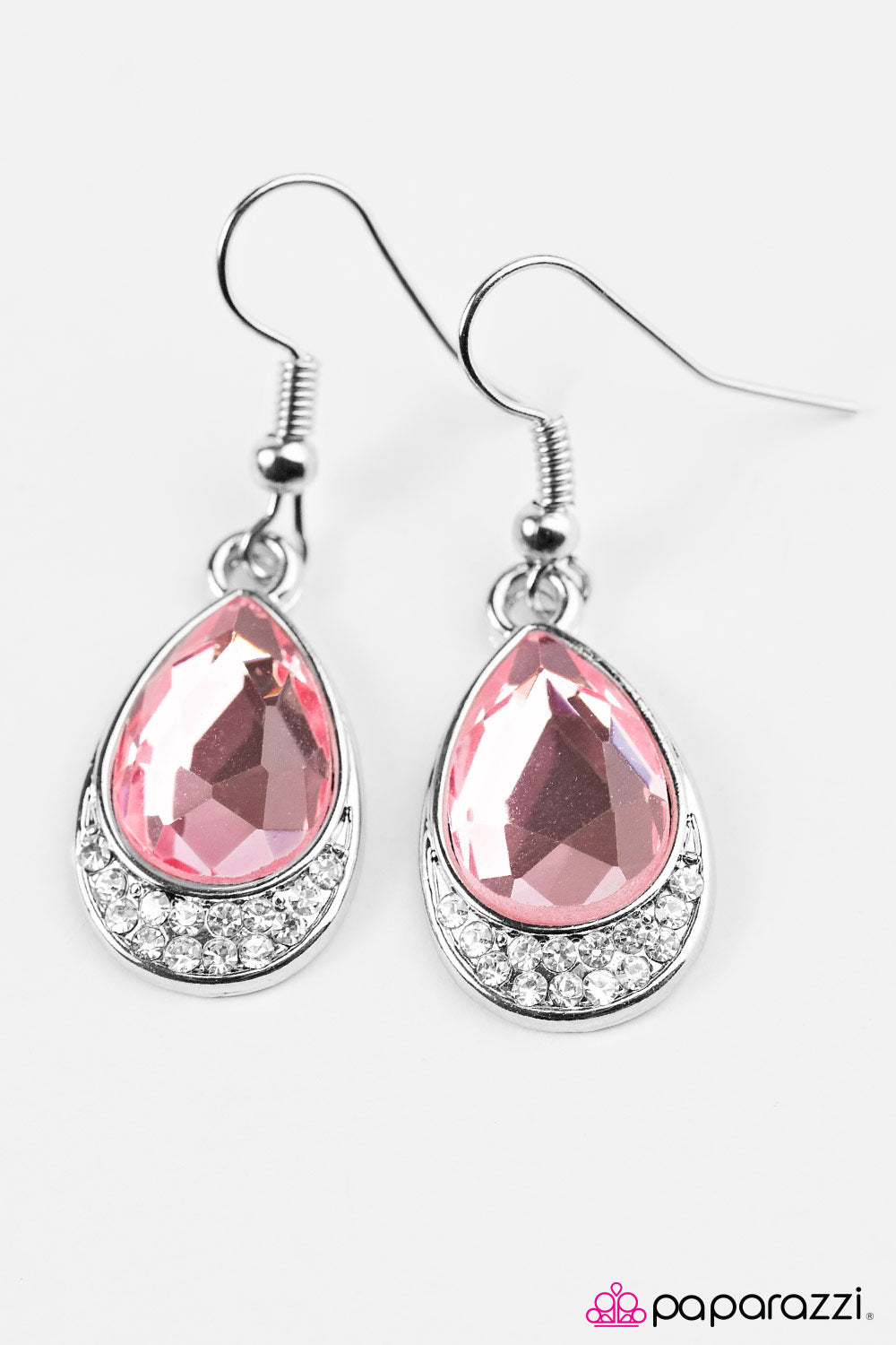 A faceted pink teardrop gives way to a silver frame dipped in glassy white rhinestones for an undeniably glittery finish. Earring attaches to a standard fishhook fitting. Sold as one pair of earrings.