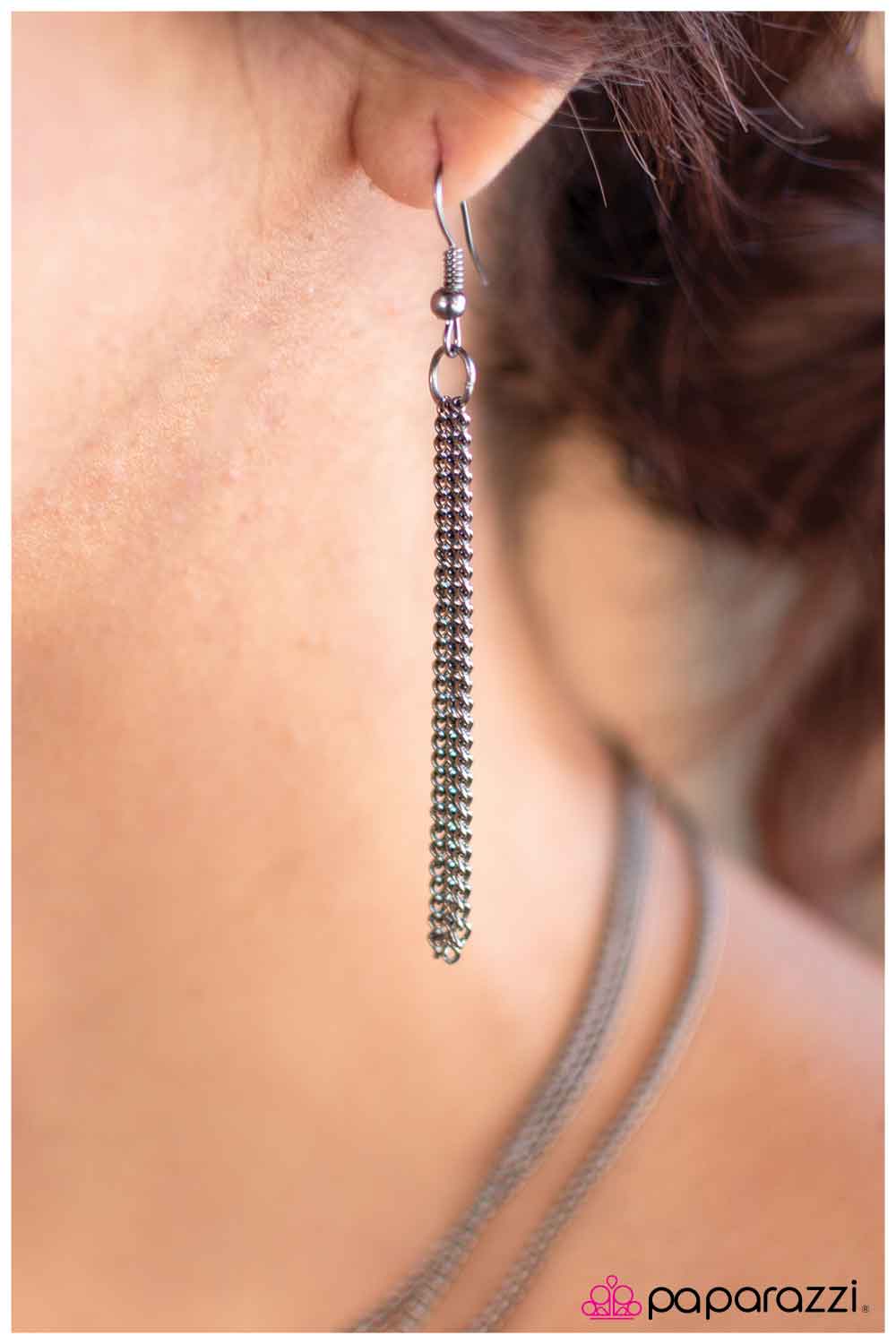 Three gunmetal strands are adorned with a cetnered wavy gunmetal disc for a beautiful layered look. Features an adjustable clasp closure. Sold as one individual necklace. Includes one pair of matching earrings.